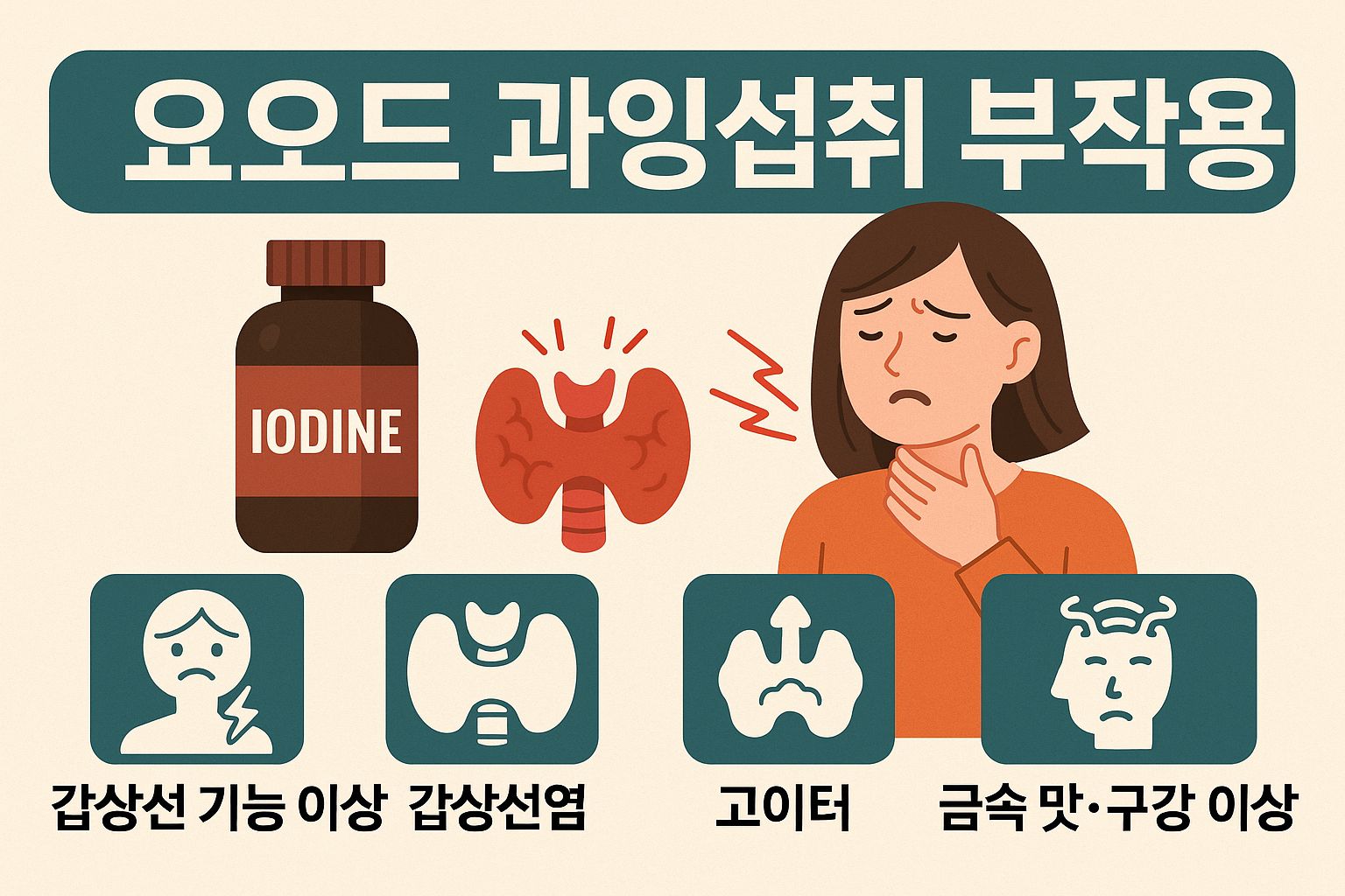 요오드를 지나치게 섭취했을 때 우리 몸은 경고 신호를 보냅니다. 가장 대표적인 게 갑상선 관련 증상들이에요.
