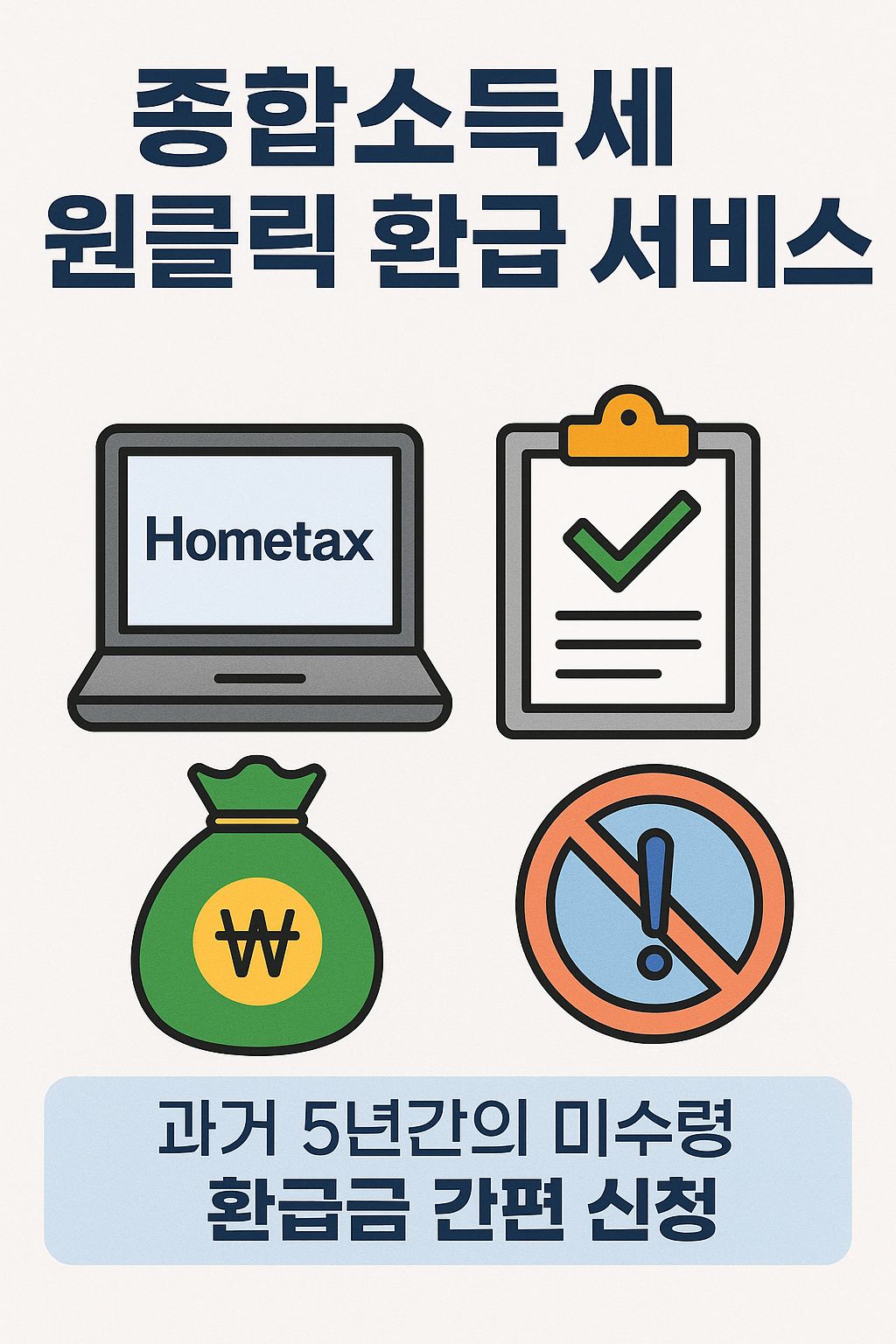 국세청이 2025년 3월 31일에 출시한 종합소득세 원클릭 환급 서비스는 납세자가 홈택스나 손택스를 통해 과거 5년간의 종합소득세 환급 여부를 간편하게 확인하고 신청할 수 있는 무료 서비스입니다