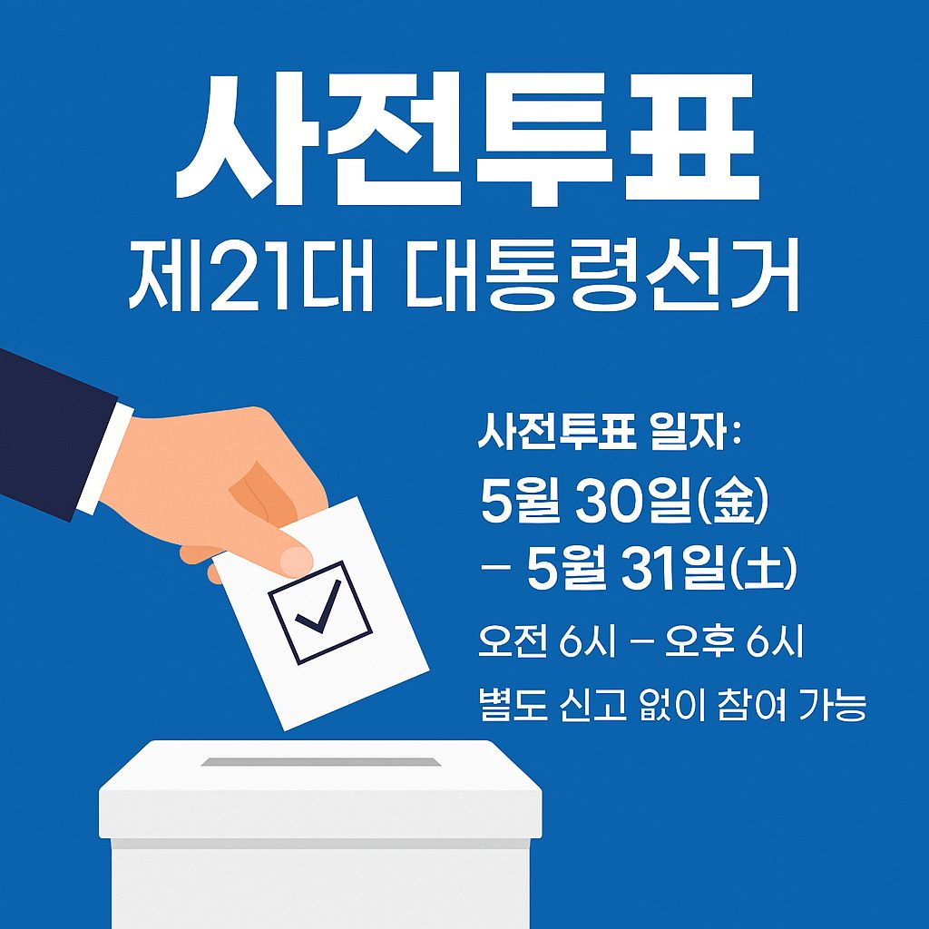 - 사전투표 기간: 2025년 5월 30일(금) ~ 5월 31일(토)