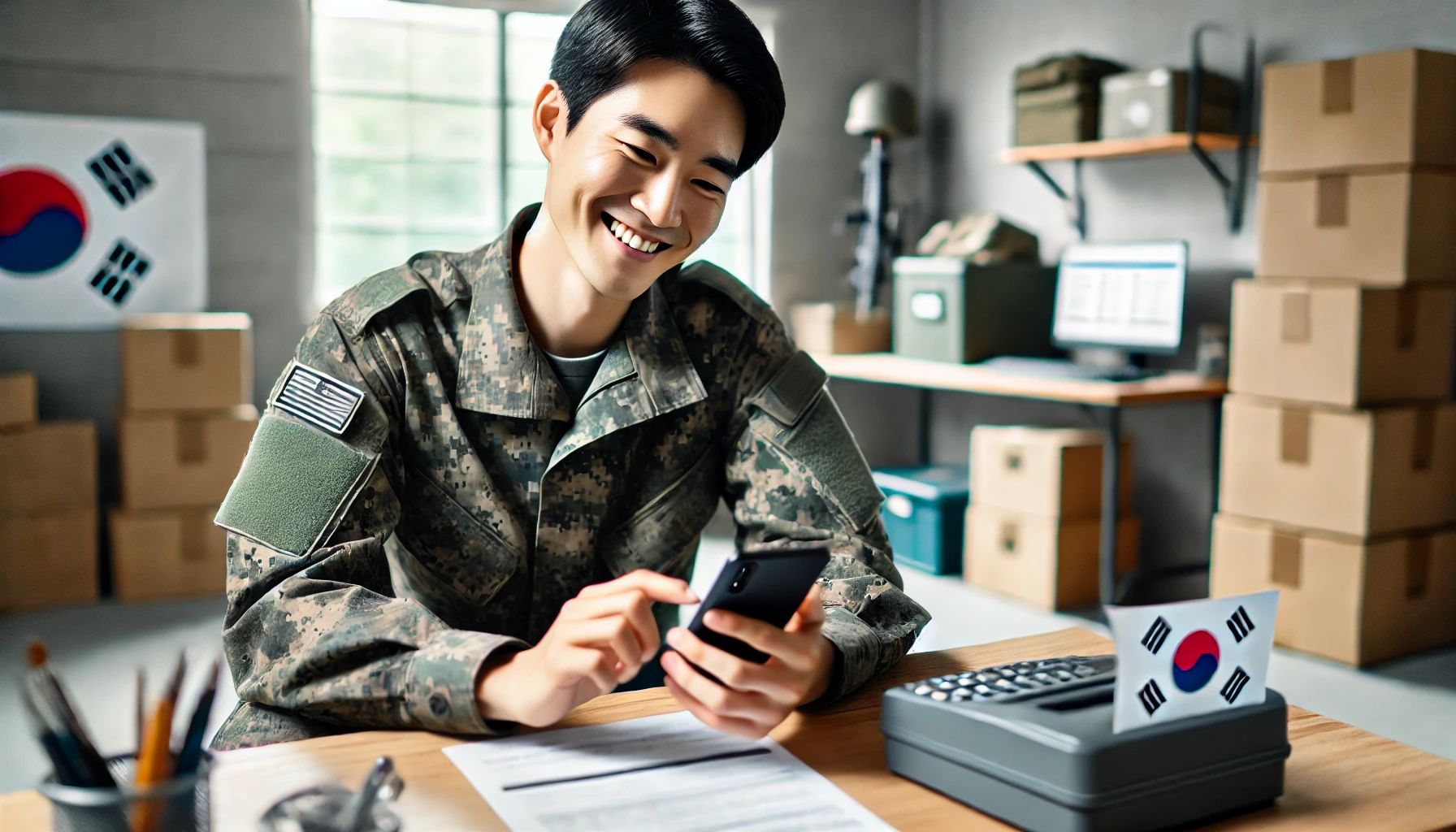 - 군 복무증, 신분증 지참 → 창구에서 신청
